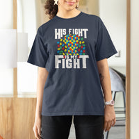 Autism Support T Shirt For Women His Fight is My Fight Jig Saw Puzzle Boy