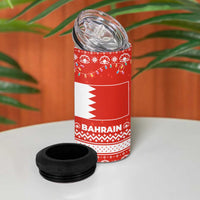 Bahrain Christmas 4 in 1 Can Cooler Tumbler with Pearl Shell Design Red Snowflake Pattern and Holiday Lights