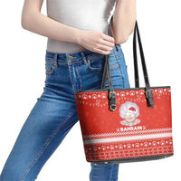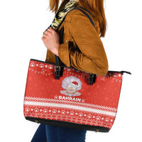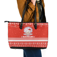 Bahrain Christmas Leather Tote Bag with Pearl Shell Design Red Snowflake Pattern and Holiday Lights