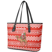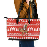Bahrain Christmas Leather Tote Bag with Santa Riding Camel Red Geometric Pattern and Festive Design