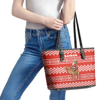Bahrain Christmas Leather Tote Bag with Santa Riding Camel Red Geometric Pattern and Festive Design TS04