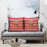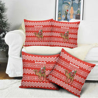 Bahrain Christmas Pillow Cover with Santa Riding Camel Red Geometric Pattern and Festive Design