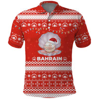Bahrain Christmas Polo Shirt with Pearl Shell Design Red Snowflake Pattern and Holiday Lights TS04