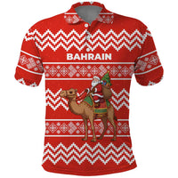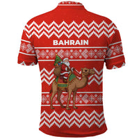 Bahrain Christmas Polo Shirt with Santa Riding Camel Red Geometric Pattern and Festive Design TS04