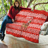 Bahrain Christmas Quilt with Santa Riding Camel Red Geometric Pattern and Festive Design TS04