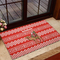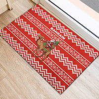 Bahrain Christmas Rubber Doormat with Santa Riding Camel Red Geometric Pattern and Festive Design