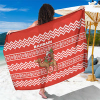 Bahrain Christmas Sarong with Santa Riding Camel Red Geometric Pattern and Festive Design