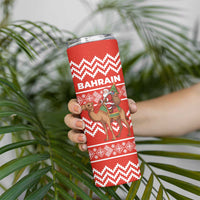 Bahrain Christmas Skinny Tumbler with Santa Riding Camel Red Geometric Pattern and Festive Design TS04