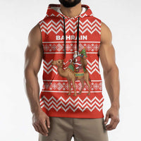 Bahrain Christmas Sleeveless Hoodie with Santa Riding Camel Red Geometric Pattern and Festive Design