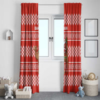 Bahrain Christmas Window Curtain with Santa Riding Camel Red Geometric Pattern and Festive Design TS04