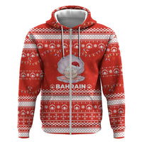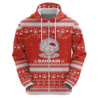 Bahrain Christmas Zip Hoodie with Pearl Shell Design Red Snowflake Pattern and Holiday Lights