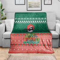 Bangladesh Christmas Blanket with Black-Capped Bird Gift Stack and Green Red Snowflake Pattern