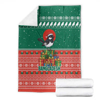 Bangladesh Christmas Blanket with Black-Capped Bird Gift Stack and Green Red Snowflake Pattern TS04