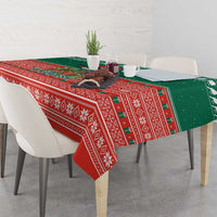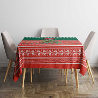 Bangladesh Christmas Tablecloth with Black-Capped Bird Gift Stack and Green Red Snowflake Pattern TS04