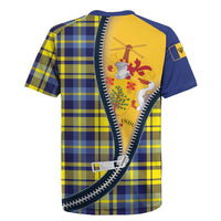 Barbados Celtic Festival Rugby Jersey Yellow Blue Tartan Zipper Stylized LT01