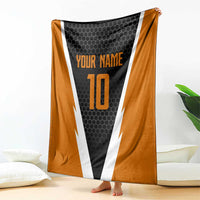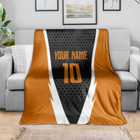 Bass Fishing Blanket Jumping Largemouth Fish on Black Hex Pattern and Orange White Lightning Accents