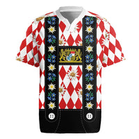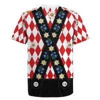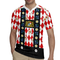 Bavaria Traditional Lederhosen Costume Rugby Jersey Bavaria Emblem - Red Plaid Pattern with Edelweiss Flowers LT03