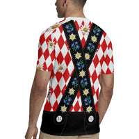 Bavaria Traditional Lederhosen Costume Rugby Jersey Bavaria Emblem - Red Plaid Pattern with Edelweiss Flowers