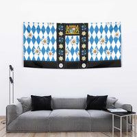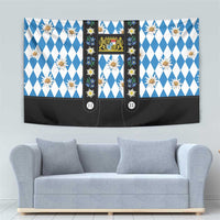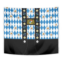 Bavaria Traditional Lederhosen Costume Tapestry Bavaria Emblem - Blue Plaid Pattern with Edelweiss Flowers