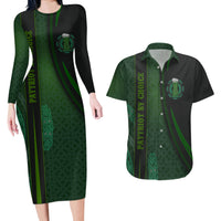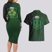 Beer Cup Pattern And Celtic Circle Green Couples Matching Long Sleeve Bodycon Dress and Hawaiian Shirt