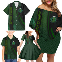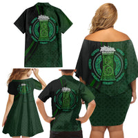 Beer Cup Pattern And Celtic Circle Green Family Matching Off Shoulder Short Dress and Hawaiian Shirt