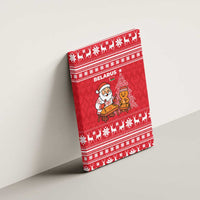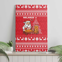 Belarus Christmas Canvas Wall Art with Santa Gingerbread Playing Chess National Emblem and Nordic Pattern Design