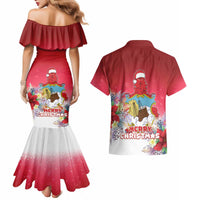 Bermuda Christmas Couples Matching Mermaid Dress and Hawaiian Shirt Coquette Bow Xmas Vibe LT05
