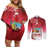 Bermuda Christmas Couples Matching Off Shoulder Short Dress and Long Sleeve Button Shirt Coquette Bow Xmas Vibe LT05