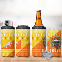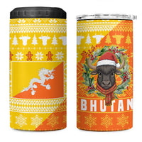 Bhutan Christmas 4 in 1 Can Cooler Tumbler with Takin Reindeer Antlers Santa Hat and Yellow Orange Holiday Pattern