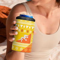 Bhutan Christmas 4 in 1 Can Cooler Tumbler with Takin Reindeer Antlers Santa Hat and Yellow Orange Holiday Pattern TS04