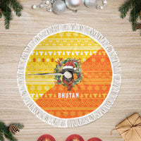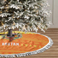 Bhutan Christmas Tree Skirt with Takin Reindeer Antlers Santa Hat and Yellow Orange Holiday Pattern