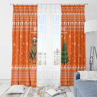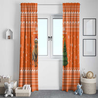 Bhutan Christmas Window Curtain with Takin Santa Hat Christmas Tree and Snowflake Pattern in Orange