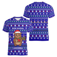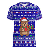 Bon Nadal Andorra Christmas Women V-Neck T-Shirt Holiday Bear, Snowflakes, Paw Prints & Winter TS04