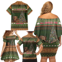 Book Lovers Christmas Family Matching Off Shoulder Short Dress and Hawaiian Shirt Gingerbread With Xmas Book Tree