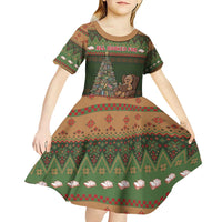 Book Lovers Christmas Kid Short Sleeve Dress Gingerbread With Xmas Book Tree DT05