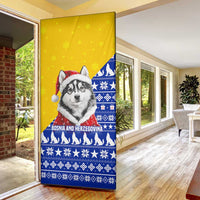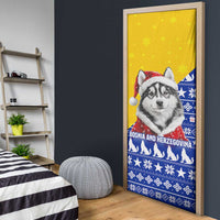 Transform your home with the Bosnia and Herzegovina Christmas Door Cover with Husky Dog Santa Hat and Blue Yellow Snowflake Pattern by Wonder Print Shop. Don’t miss your chance to bring vibrant design and quality craftsmanship to your doorway.