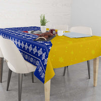 Bosnia and Herzegovina Christmas Tablecloth with Husky Dog Santa Hat and Blue Yellow Snowflake Pattern TS04