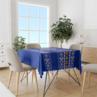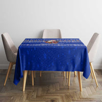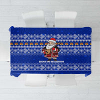 Bosnia and Herzegovina Christmas Tablecloth with Santa Playing Traditional Instrument and Blue Snowflake Pattern TS04