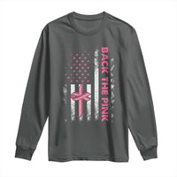 Breast Cancer Awareness Long Sleeve Shirt Back The Pink Warrior American Flag TS11