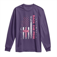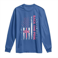 Breast Cancer Awareness Long Sleeve Shirt Back The Pink Warrior American Flag