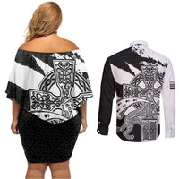 Brittany Celtic Cross Couples Matching Off Shoulder Short Dress and Long Sleeve Button Shirt Celtic Pattern