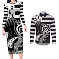 Brittany Ermine Celtic Couples Matching Long Sleeve Bodycon Dress and Long Sleeve Button Shirt Black Celtic Triskels