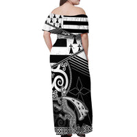 Brittany Ermine Celtic Off Shoulder Maxi Dress Black Celtic Triskels LT18