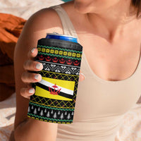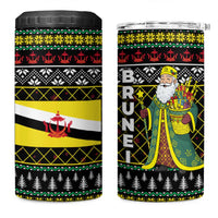 Brunei Christmas 4 in 1 Can Cooler Tumbler with Traditional Santa Gift Basket and Black Yellow Red Holiday Pattern