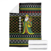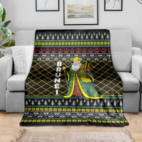 Brunei Christmas Blanket with Traditional Santa Gift Basket and Black Yellow Red Holiday Pattern