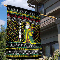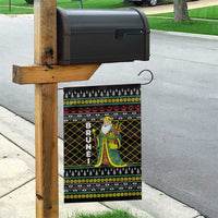 Brunei Christmas Garden Flag with Traditional Santa Gift Basket and Black Yellow Red Holiday Pattern