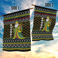 Brunei Christmas Garden Flag with Traditional Santa Gift Basket and Black Yellow Red Holiday Pattern TS04