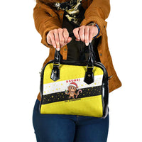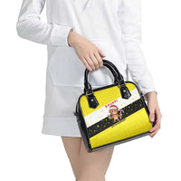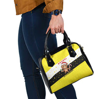 Brunei Christmas Shoulder Handbag with Cartoon Monkey Santa Hat Candy Cane and Yellow Black Flag Pattern