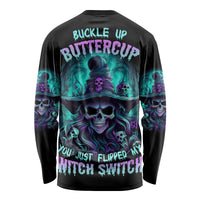 Buckle Up Buttercup Skull Witch Halloween Long Sleeve Shirt