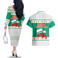 Bulgaria Christmas Couples Matching Off The Shoulder Long Sleeve Dress and Hawaiian Shirt with Green-White Theme, Coat of Arms, and National Flag Motif TS04